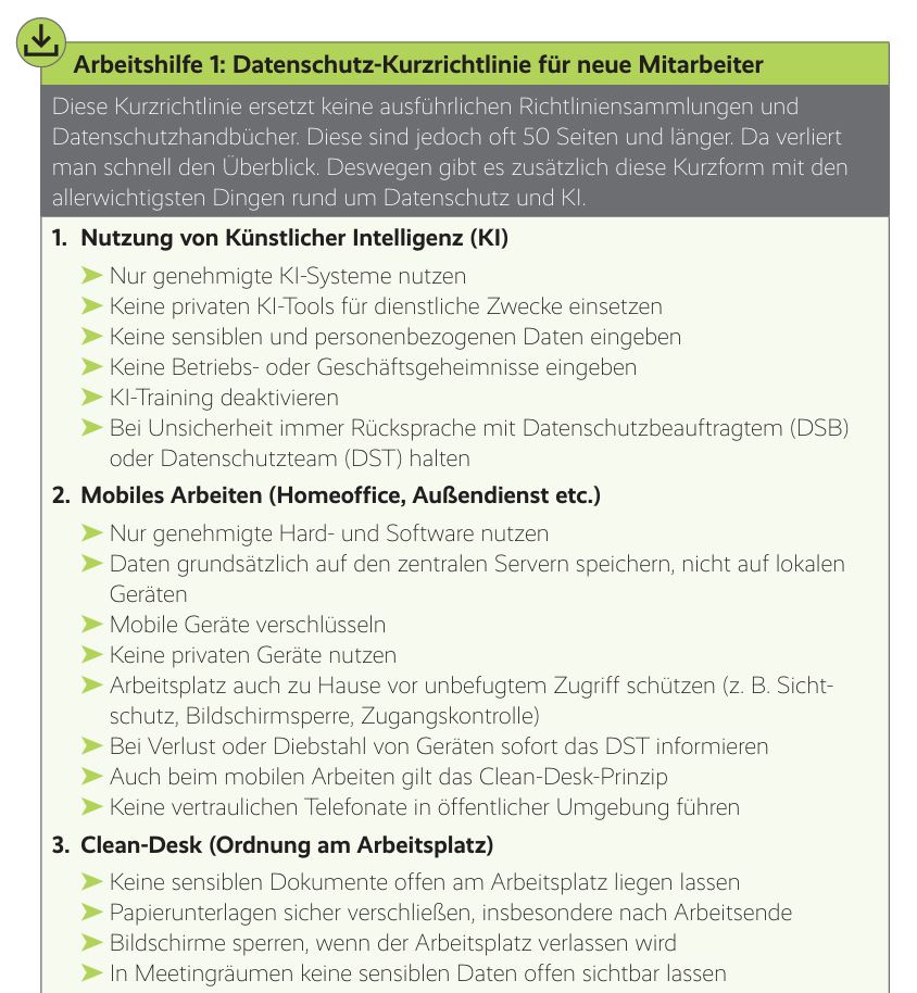Ihre Arbeitshilfen zum Praxishandbuch „Die größten Datenschutz-Fallen in Zeiten von KI“